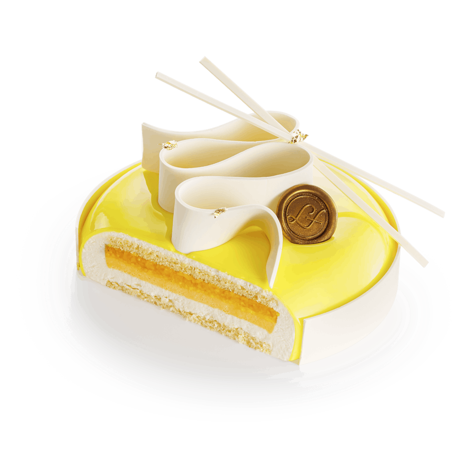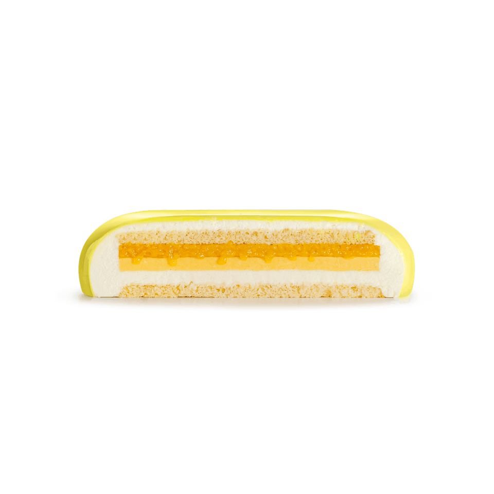 Made from young coconut, mango, and passion fruit, One Sunny Day is always a crowd-pleasing cake flavor. The creamy coconut mousse, lightly tangy passion fruit cream, and handmade mango jam pair perfectly with the soft, fluffy coconut sponge cake. Topped with a vibrant golden mirror glaze that shines like a sunny day, One Sunny Day is a cake bursting with tropical flavors.